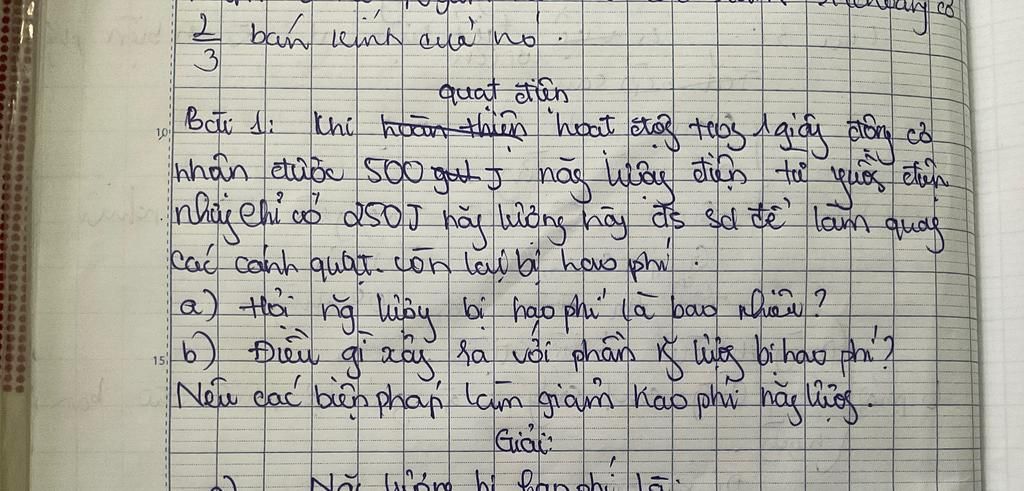\(Q_{\text{hao}\&\text{nbsp};\text{ph} \overset{ˊ}{\imath}} = Q_{đ \overset{ˋ}{\hat{\text{a}}} \text{u}\&\text{nbsp};\text{v} \overset{ˋ}{\text{a}} \text{o}} - Q_{\text{h}ữ\text{u}\&\text{nbsp}; \overset{ˊ}{\imath} \text{ch}} = 500 - 250 = 250 \textrm{ } J .\)b) Điều gì xảy ra với phần năng lượng bị hao phí? Nêu các biện pháp làm giảm hao phí này.