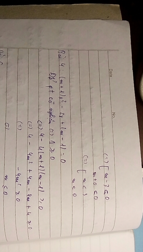 ⇔ 1 - (m+1)(m-1) ≥ 0 ⇔ -m2 + 2 ≥ 0 ⇔ \(-\sqrt{2}\le m\le\sqrt{2}\)
