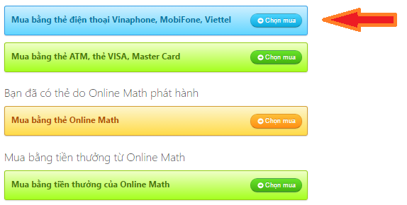 BƯỚC 4: Chọn "Mua bằng thẻ điện thoại Viettel, Vinaphonem MobiPhone"