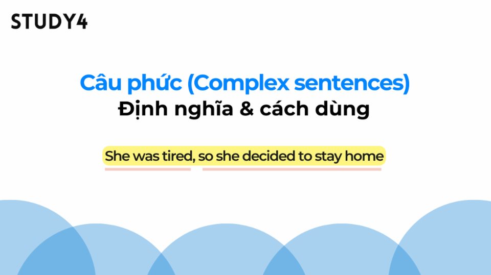 Câu phức là một loại câu trong tiếng Anh bao gồm một mệnh đề độc lập (mệnh đề chính) và ít nhất một mệnh đề phụ thuộc.