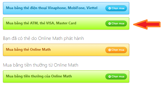 BƯỚC 4: Chọn "mua bằng thẻ ATM, Visa hoặc Master Card"